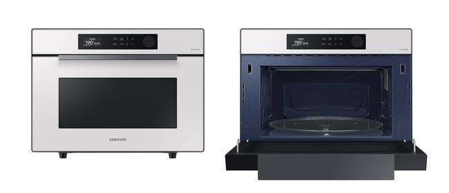 삼성전자가 포스코와 공동 개발해 재활용 소재 함유율을 높인 법랑용 강판이 제품 내부 소재로 사용되고 있는 모습. 법랑용 강판은 제품 내부 조리실에 파란색을 띠고있는 소재다.