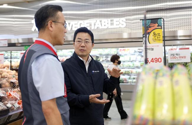 산업부 박성택 1차관은 지난 3일, 롯데마트 서울역점을 방문하여 과일, 채소, 육류 등 신선식품 매장을 중심으로 가격 및 판매동향을 점검하고, 추석명절을 계기로 내수가 살아날 수 있도록 대형마트에 할인행사를 확대해 줄 것을 당부했다.