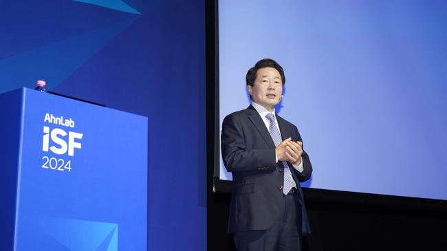 안랩 강석균 대표가 안랩 ISF 2024에서 인사말을 하고 있다