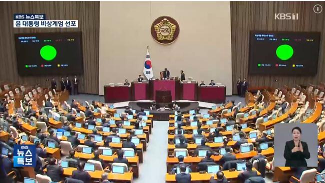 국회는 4일 새벽 본회의를 열어 윤석열 대통령이 전날 선포한 비상계엄의 해제를 요구하는 결의안을 재석 의원 190명 전원 찬성으로 가결했다.