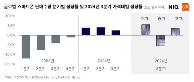 NIQ GfK 2024년 3분기 글로벌 스마트폰 시장 성장률(자료: NIQ/GfK SIMA (Supply Chain & Industry Market Analytics))