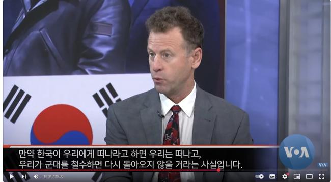 또한 마이클 오핸런 브루킹스연구소 연구원이 "진보 정부가 떠나라 해서 우리가 군대를 철수하면 다시 돌아오지 않을 것"이라고 경고했다고 강조했다.