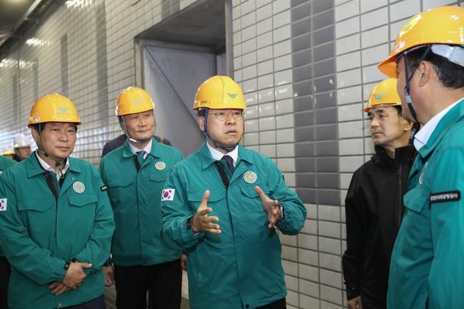 진현환 1차관이 16일 오전 인천국제공항 항공단지 지하차도 집중 안전점검 현장을 방문하여 진행상황을 점검하고 있다.