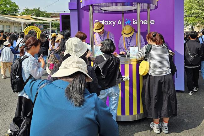 에버랜드에 마련된 `갤럭시 스튜디오 Photo`에서 방문객들이 `갤럭시 S24 시리즈`를 무료로 대여해주는 `갤럭시 To Go` 서비스를 이용하고 있다.