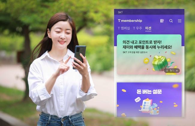 ‘돈 버는 설문’은 SKT의 빅데이터와 AI 기술력을 바탕으로 이루어지는 설문 조사 서비스로, SKT가 자체 제작하는 설문과 외부 의뢰를 통해 진행하는 설문으로 구성된다. 고객은 두 가지 설문 모두 T멤버십 앱 내의 ‘미션’ 탭을 통해 참여할 수 있다.