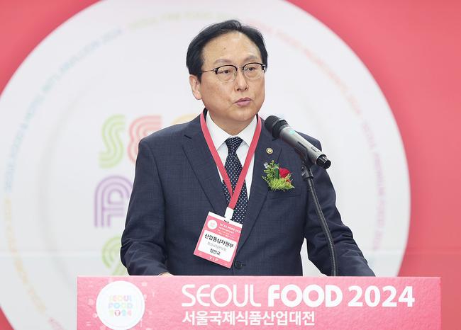 정인교 산업통상자원부 통상교섭본부장은 2024. 6. 11 10:00 경기도 일산시 KINTEX 제1전시장에서 유정열 KOTRA 사장을 비롯한 미국, 태국, 중국 등 52개국 1,605여개 기업 2,969개 부스가 참가한 가운데 열린 「2024 서울국제식품산업대전 개막식」에 참석하여, 축사 및 테이프커팅 한 후 전시장을 둘러보았다.
