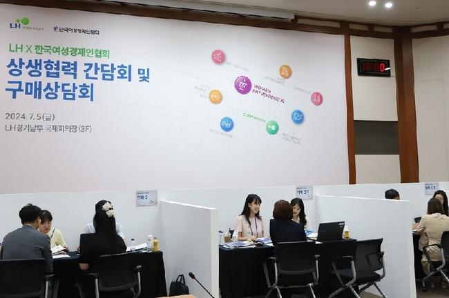 한국토지주택공사(LH)는 5일 LH 경기남부지역본부 국제회의장에서 ‘LH-한국여성경제인협회 상생협력 간담회 및 구매상담회’를 개최했다고 밝혔다.