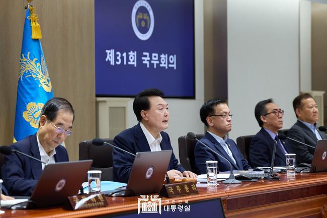 윤석열 대통령이 지난 16일 용산 대통령실에서 2024년도 제31회 국무회의를 주재하고 있다.