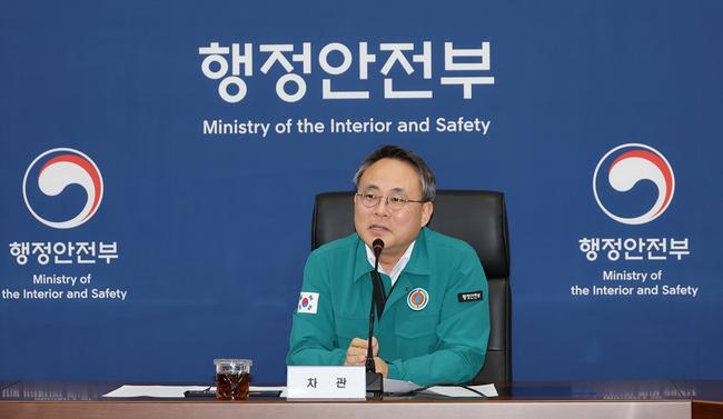고기동 행정안전부 차관이 19일 오전 정부세종청사 종합상황실에서 2024년 을지연습 최초상황 보고회의를 주재하고 있다.