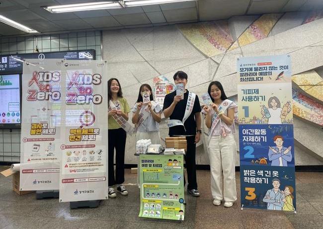 지난 1일 등촌역, 화곡역 인근에서 말라리아 예방수칙 홍보 캠페인을 실시하고 휴대용 모기기피제, 리플릿 등을 배부했다.