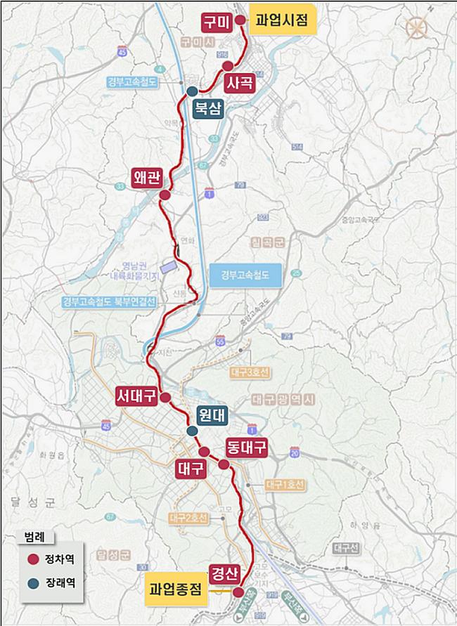 이 노선은 기존 경부선 철도를 개량하여 전동차를 투입하는 방식으로 설계된 ‘저비용 고효율’ 사업이다. 기존 무궁화호 열차가 운행하던 구미~경산 구간에 전동차를 추가 배치함으로써 열차 운행 횟수를 4배 늘렸다. 특히 출퇴근 시간대에는 19분 간격으로 운행하며, 구미에서 서대구까지 37분, 동대구에서 경산까지는 11분 만에 도달할 수 있다.