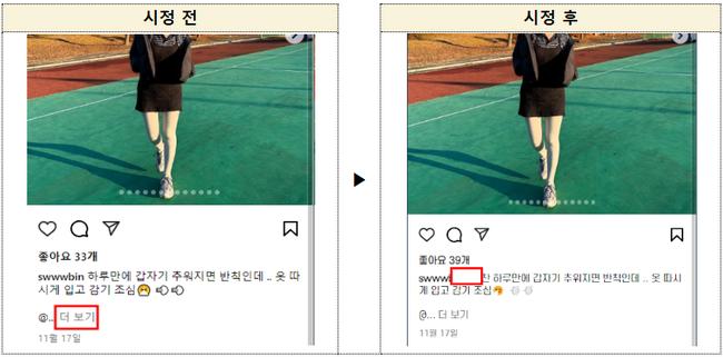 인스타그램은 `표시위치 부적절`(13,936건, 73.9%) 사례가 가장 많았으며, 특히 모바일 화면의 `더보기`란에 표시한 경우가 대부분이었다.
