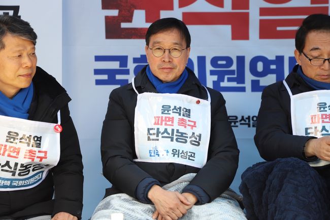 윤석열 대통령 탄핵심판 선고를 촉구하며 단식농성을 이어가고 있는 야5당 ‘윤석열 탄핵 국회의원 연대’가 17일, 단식 7일 차를 맞았다.